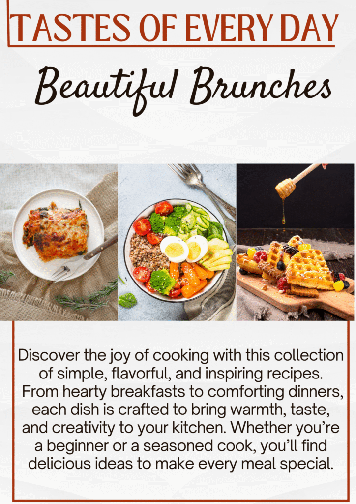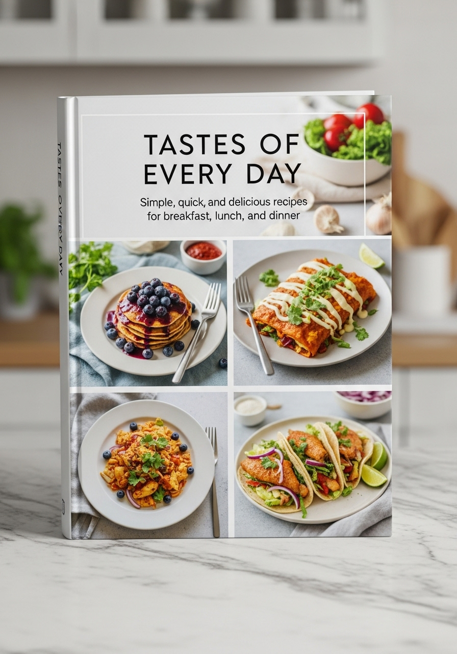 Tastes of Every Day is a collection of simple, quick, and delicious recipes made for real life. Whether you’re looking for an energizing breakfast, a satisfying lunch, or a comforting dinner, this book brings fresh flavor and ease to every meal. Perfect for anyone who loves good food but doesn’t have hours to spend in the kitchen.